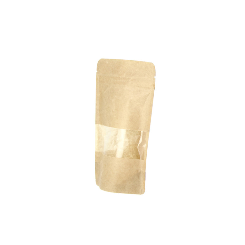La bolsa doypack con ventana pequeña es la solución perfecta para almacenar tus productos gourmet de forma atractiva y segura. Su tamaño compacto (11+5x18,5 cm) la hace ideal para pequeños volúmenes de café, especias o hierbas deshidratadas. Fabricada en papel kraft plastificado con laminación interior de PET, es resistente a la humedad, garantizando la frescura del contenido.