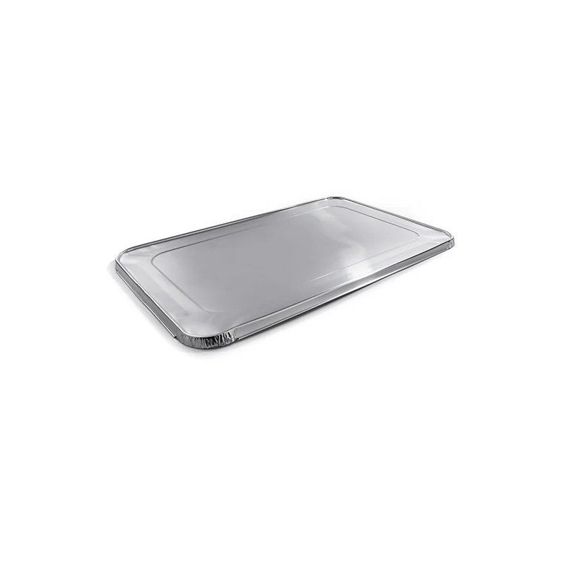 Tapa de aluminio compatible con los envases rectangulares de aluminio para asados. Gracias a su diseño funcional, permite un sellado óptimo que protege el contenido del envase durante el transporte, evitando derrames, fugas o pérdidas de calor. Mantiene la temperatura interior y la presentación del alimento, garantizando que llegue al cliente en perfectas condiciones.