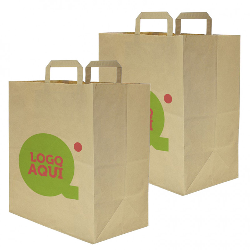 Bolsa Papel Kraft Asa Plana (32+17x34cm) Personalizada