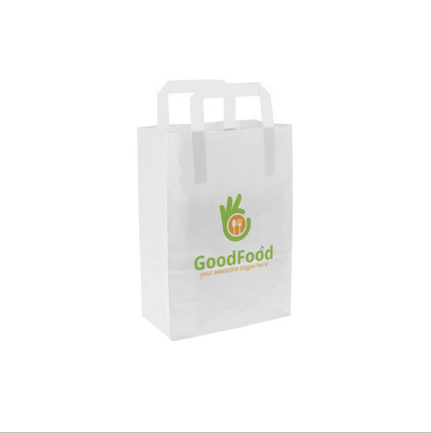 Bolsa de papel blanca con asa plana (20+10x28cm) Personalizada