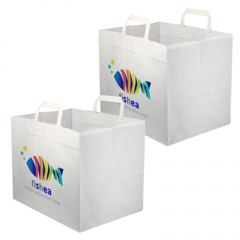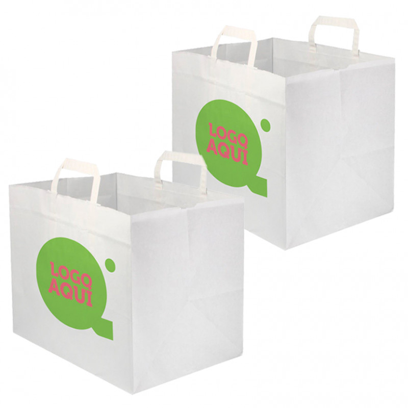 Bolsa Papel Blanca fondo ancho asa plana (32+21x25cm) Personalizada