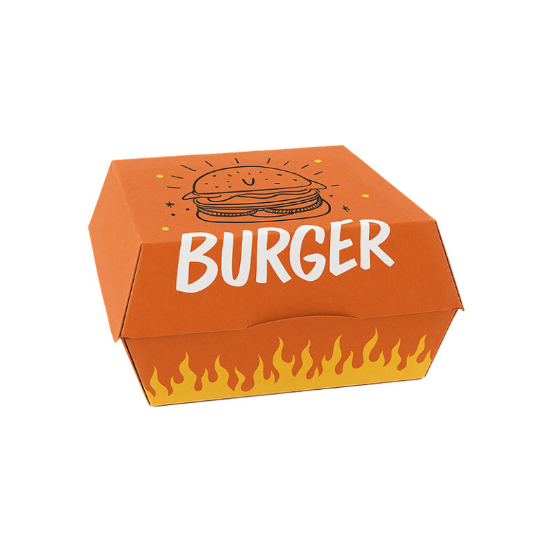 Cajas de cartón kraft para hamburguesas pequeñas Personalizadas 1 Tinta