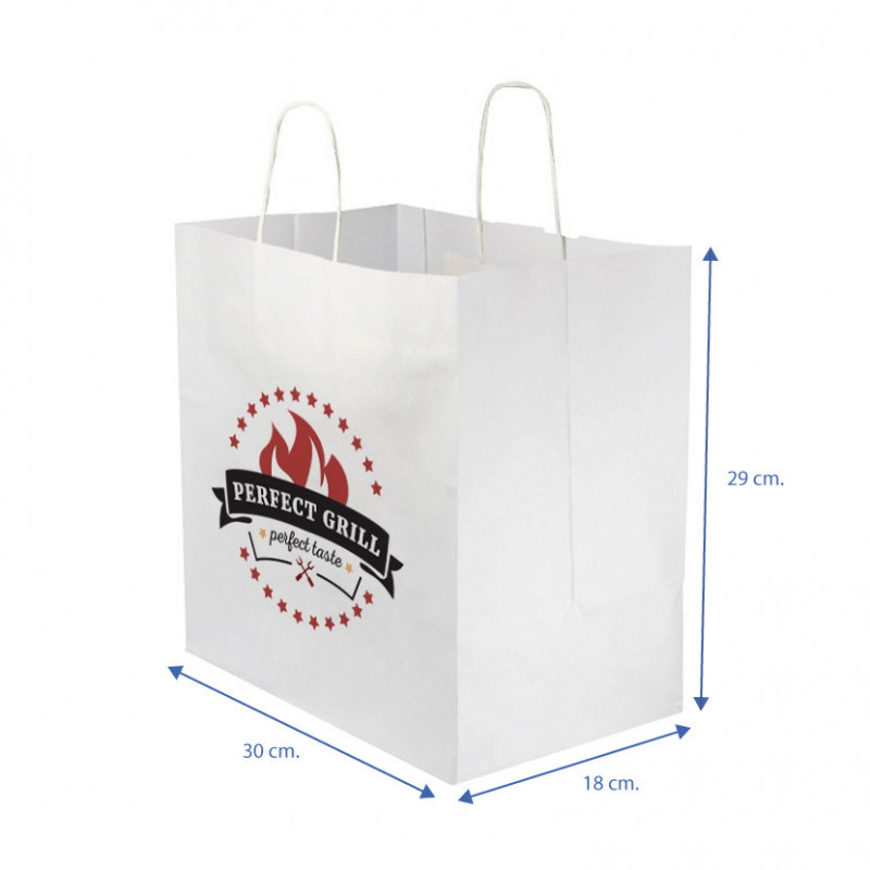 Saco de Papel Branco com Alça Encaracolada (30+18x29 cm) Personalizado