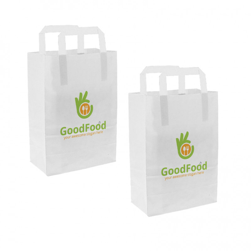Bolsa de papel blanca con asa plana (20+10x28cm) Personalizada