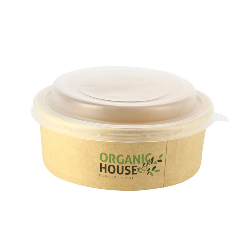 Ensaladera de cartón kraft con tapa PP (550cc) Personalizado 1 tinta