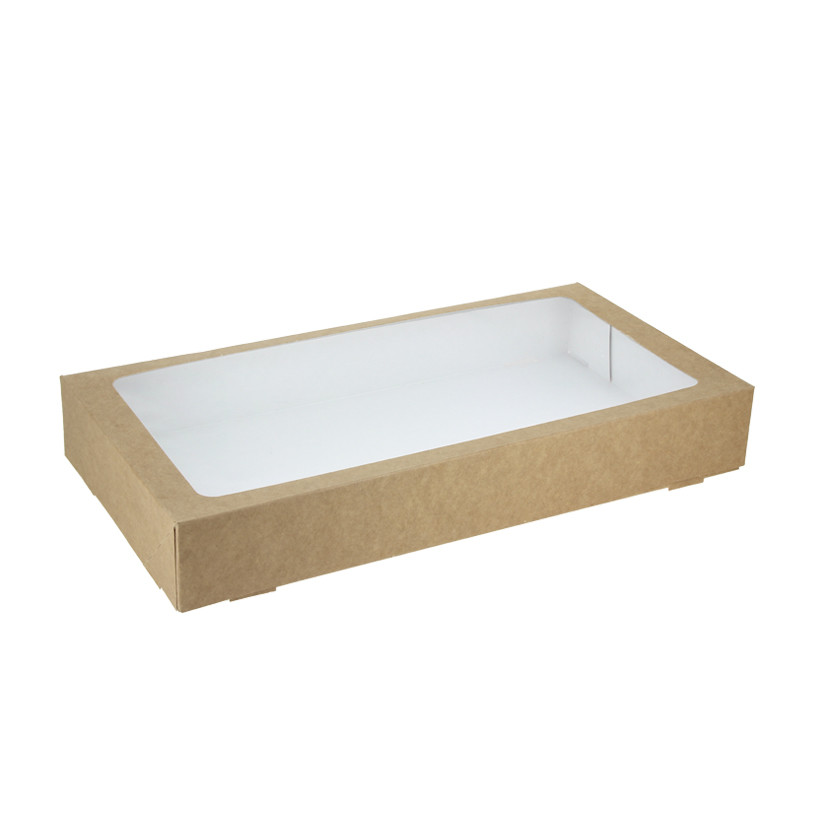 São caixas de papelão para padaria que oferecem uma apresentação perfeita do seu pão, bolos e croissants. Graças aos seus 34 cm de largura, você pode colocar uma grande quantidade de pastelaria para viagem. São caixas kraft com janela feitas de papelão de alta qualidade e resistente. A sua abertura frontal é totalmente segura para delivery. São embalagens para pastelaria que farão com que os seus produtos pareçam tão bons quanto sabem.