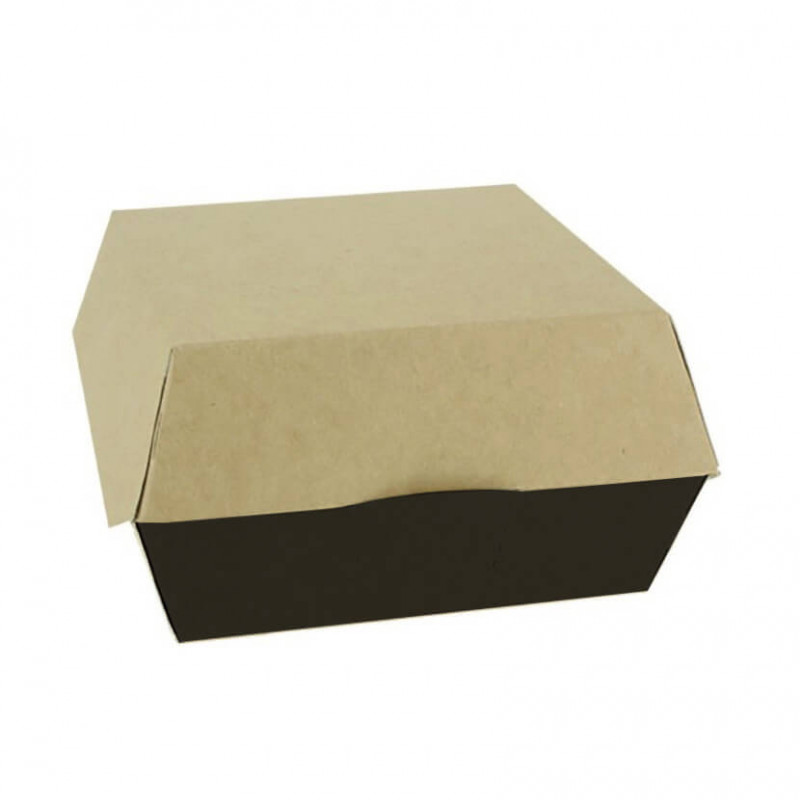 Caixa para hambúrguer grande em cartão preto kraft (12x12x8cm)