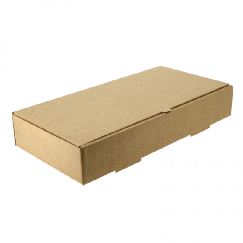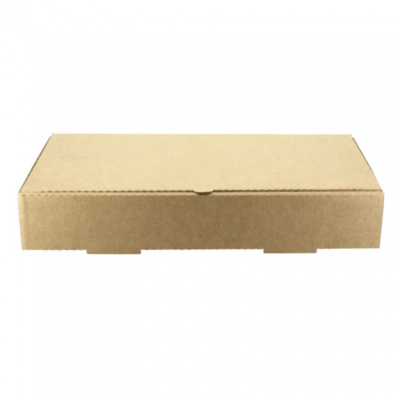 Caixas de pizza tipo calzone em papelão microcanal kraft. Material especial para conservar alimentos quentes devido à sua robustez e ventilação. Esta caixa de pizza de calzone e grandes panninis tem dois buracos na parte de trás e duas ranhuras a mais na base do recipiente. A tampa encaixa perfeitamente para delivery e take away. É recomendável acompanhar com papel anti-gordura no fundo antes de servir a pizza para evitar manchas. Caixa personalizável se desejar.