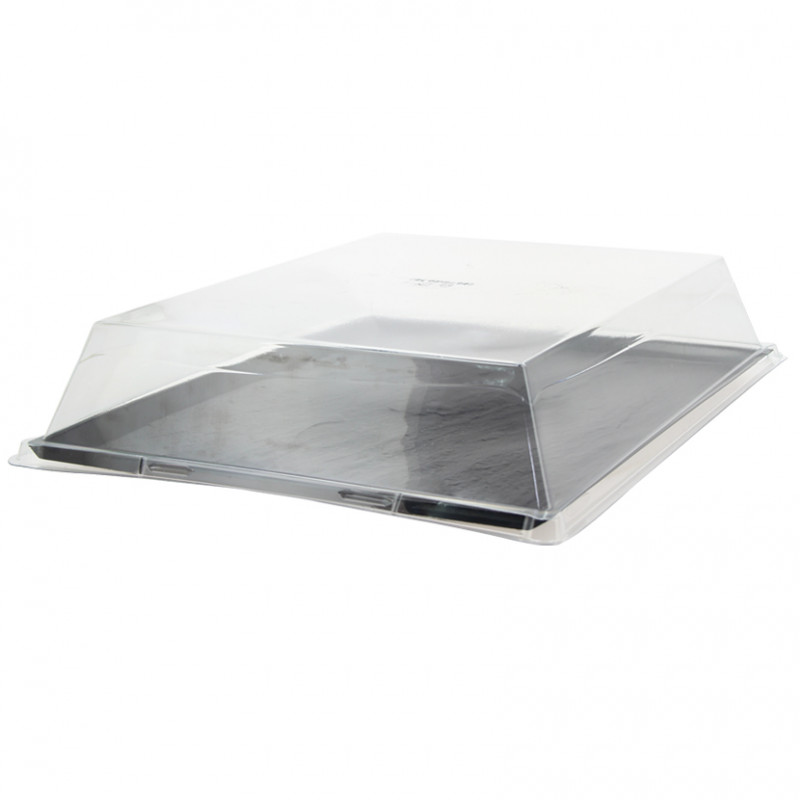 Bandejas indispensáveis para menus de degustação, catering e eventos. Super elegantes graças ao seu design de efeito ardósia, rústico e elegante. É um material PS reutilizável e reciclável. Acompanhe estas bandejas de catering com suas tampas RPET para serviço de entrega ao domicÃlio.