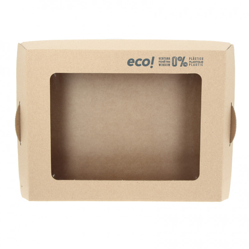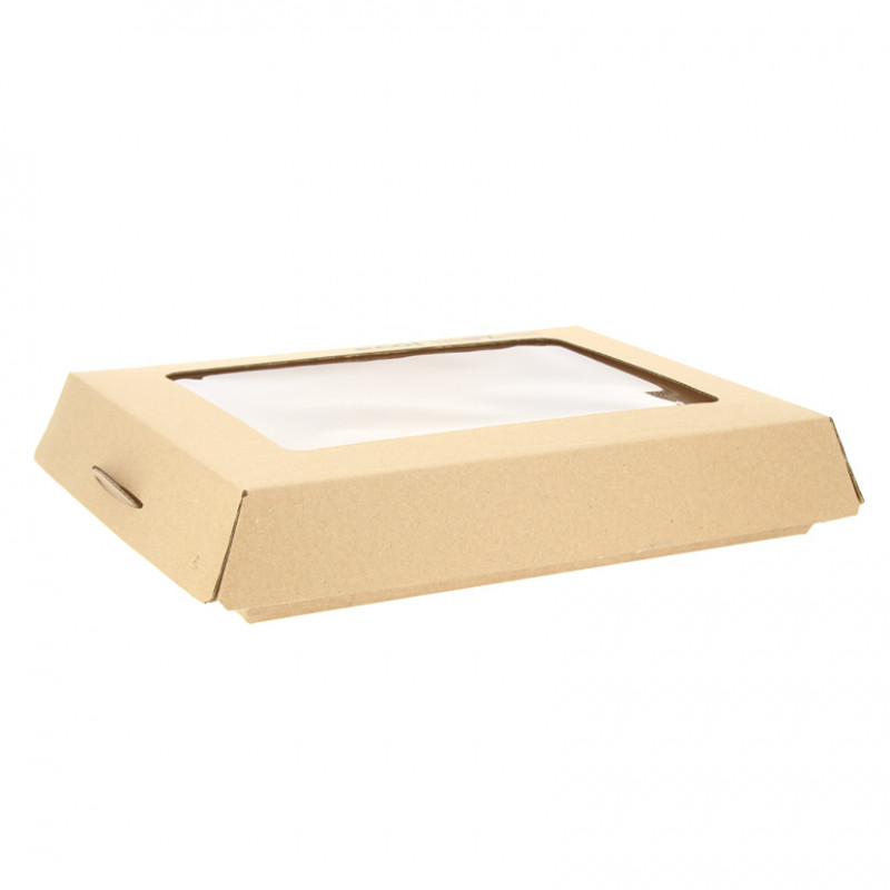Espectacular tampa para entrega de catering graças à sua janela transparente e biodegradável. Você conseguirá a melhor apresentação em seus eventos. São vendidas separadamente das bandejas de papelão kraft. Consiga a combinação mais ecológica.