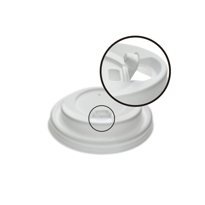 Tampa anti-derramamento com tampa de abertura/fecho. Adequada para copos de café de 7,3Ø cm de diâmetro de boca e capacidade padrão de 200 ml 7 oz. São tampas de cor branca, pensadas para beber "on the go". Fabricada em PS reciclável. Os copos ecológicos são vendidos separadamente.