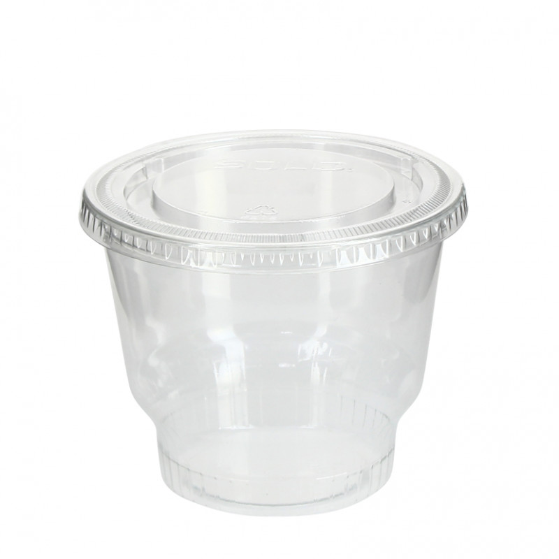 Copo para sobremesas e take away. Com capacidade de 12 oz (360ml). São copos de altura média e transparentes ideais para visualizar sobremesas e líquidos como frutas descascadas da estação, iogurte congelado, batidos e muito mais graças às suas tampas herméticas. As tampas em forma de cúpula são vendidas separadamente.