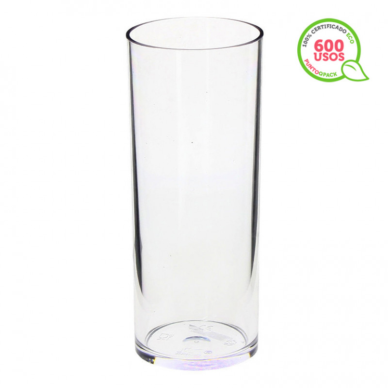 Copo de tubo para licores como Creme de Orujo e refrigerantes variados. Reutilizáveis 600 vezes após passar pela máquina de lavar louça! Boca larga do copo de 6,2Ø para adicionar os cubos de gelo. Capacidade de 300ml. Feitas de um material de policarbonato muito duro e inquebrável: não se estilhaçam. O mais parecido com vidro. Copos pensados para hotelaria, restauração e eventos.
