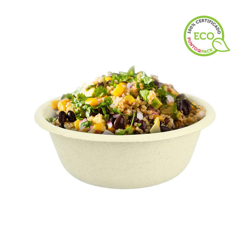Saladeira de fibra para porções de entrada. É feita com polpa natural de fibras de cana-de-açúcar. Embalagem biodegradável e compostável no ambiente. Saladeira de fibra especial para conter quase todos os tipos de alimentos graças ao seu material resistente.