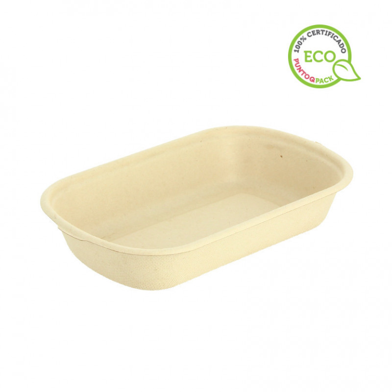 Recipientes de cana de açúcar de forma retangular. Para todos os tipos de porções de hotelaria e restauração. São uns recipientes para comida para levar com capacidade de 500cc. De um material de fibra totalmente compostável. Impulsione o seu negócio com estes recipientes biodegradáveis e sustentáveis para o meio ambiente. A tampa é vendida separadamente.