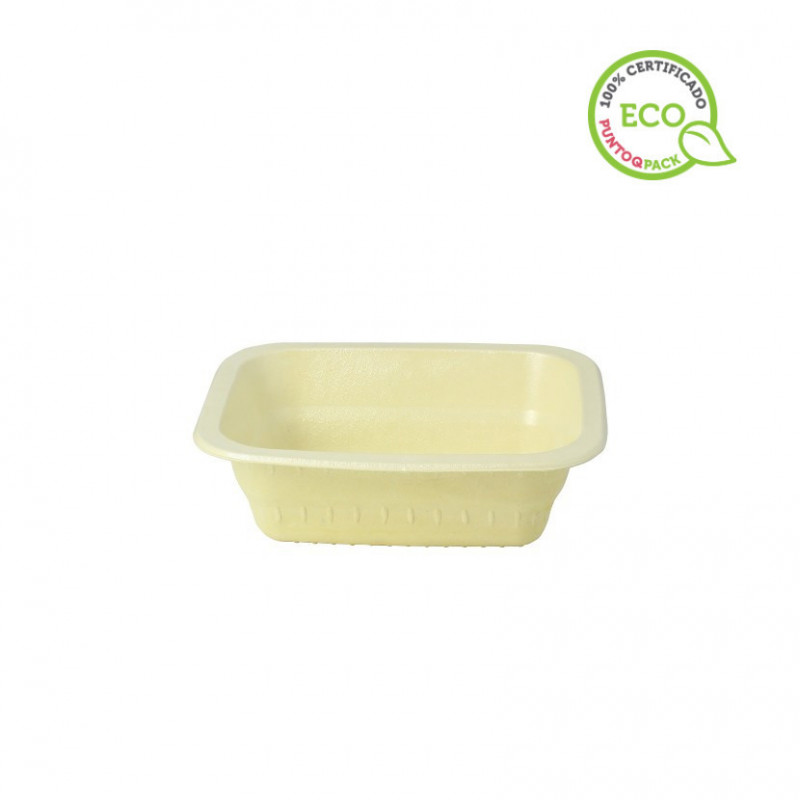 Essas embalagens 100% compostáveis são feitas de pasta de celulose com lâmina interna de amido de batata. Aceitam alimentos quentes se não excederem 80ºC. São embalagens biodegradáveis para take away e delivery, com grande estanqueidade.