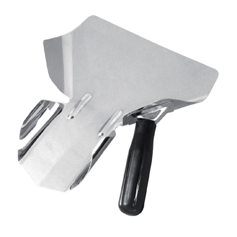 Embalador de batatas fritas feito de aço inoxidável. Esta empacotadora de batatas fritas com cabo ABS inquebrável é uma ferramenta muito útil em qualquer negócio de comida rápida.