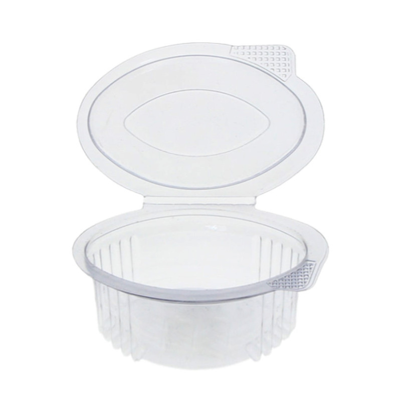 Taças para molhos de PET com capacidade para 80 ml/cc. São muito econômicas, mas de excelentes características. Seguras graças ao seu fecho hermético com tampa articulada, transparentes para ver o conteúdo do recipiente e sistema de abertura pensado para que o seu cliente não se suje ao abri-las. Esta taça para molhos não provoca derrames nos transportes de take away e delivery. Ideal para molhos frios de acompanhamento.