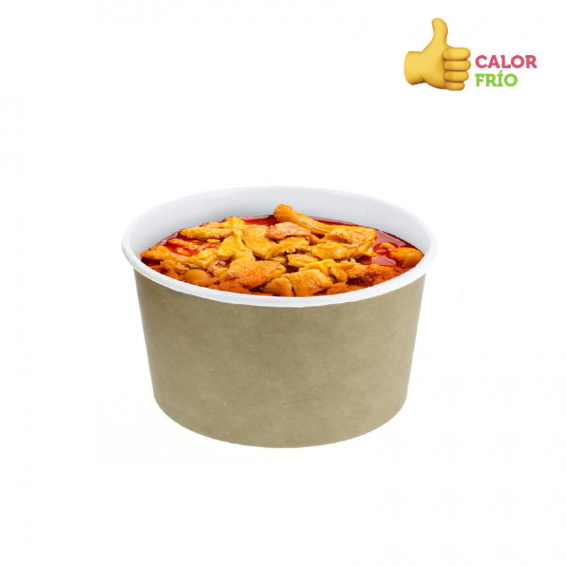 Descubra estes recipientes de cartão com decoração em cor kraft, pensados para transportar pequenas quantidades de guisados ou caldos em delivery e take away.