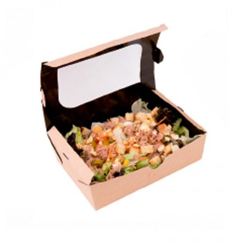 • SALADEIRA DE PAPELÃO KRAFT COM JANELA 1000CC