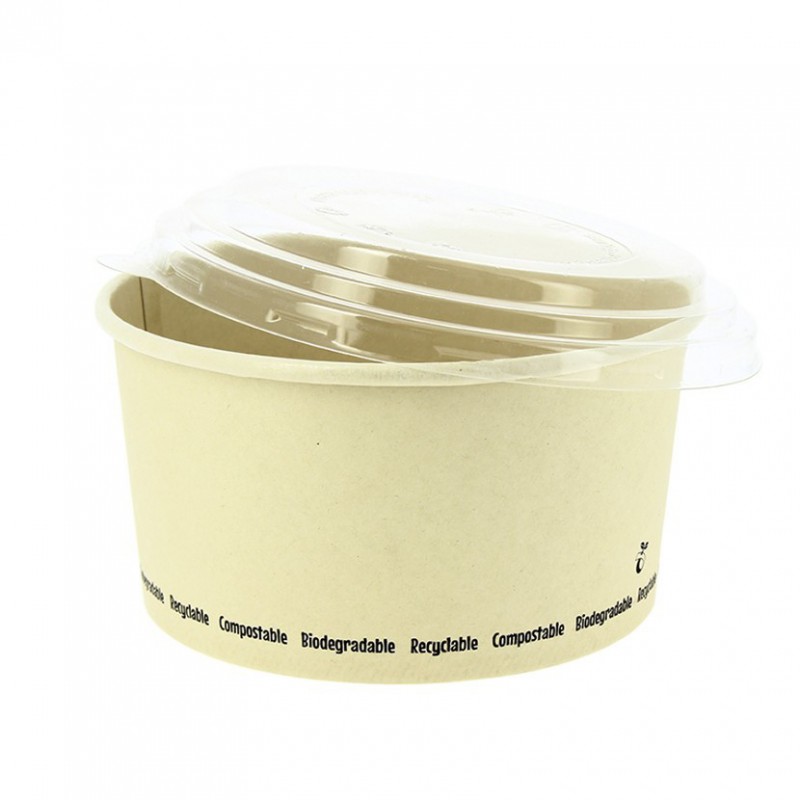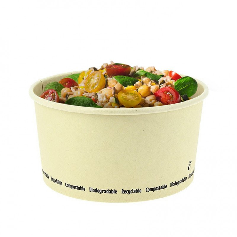 Embalagens para saladas fabricadas em fibra de bambu 100% compostáveis que se degradam e se transformam em composto para o planeta. Podes personalizá-las com o teu logo em cada embalagem. Leva estas embalagens descartáveis sozinhas ou com tampa de material 100% reciclável. As tampas são vendidas separadamente.