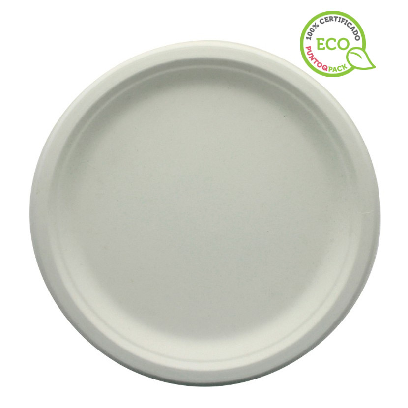 Estes pratos de cana-de-açúcar são 100% biodegradáveis. Perfeitos para servir qualquer alimento a qualquer momento. Boa resistência graças à sua espessura ótima, encontrando o equilíbrio perfeito entre praticidade e ecologia. Design na cor branca.