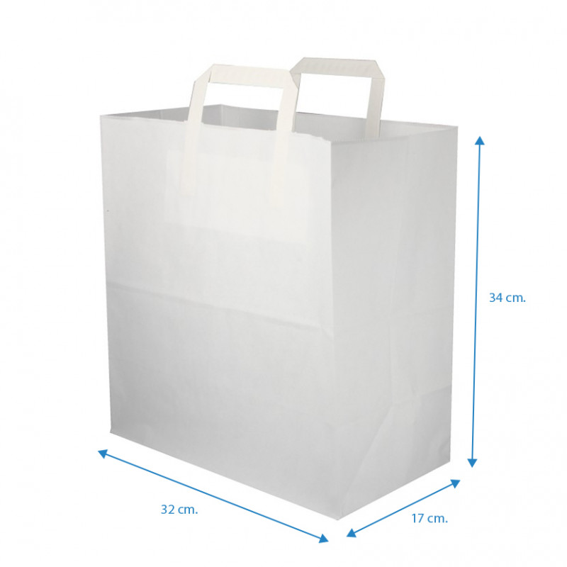Saco de papel branco com alça plana interna (32+17x34 cm)