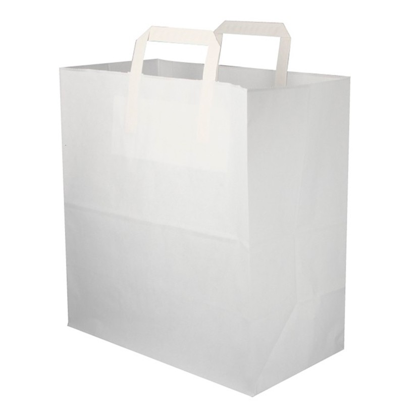 Estes sacos de papel brancos são os favoritos para takeaway pela sua excelente qualidade/preço. Maiores que a referência BP9 e na cor branca, uma alternativa perfeita. Ideais para personalizar. Têm o tamanho ideal para quase todas as embalagens de comida para levar. Sua altura permite empilhar até 4 alturas das suas embalagens. As suas alças são planas e reforçadas por dentro para transportar quilos e quilos de comida. São sacos ecológicos fabricados 100% em florestas sustentáveis.