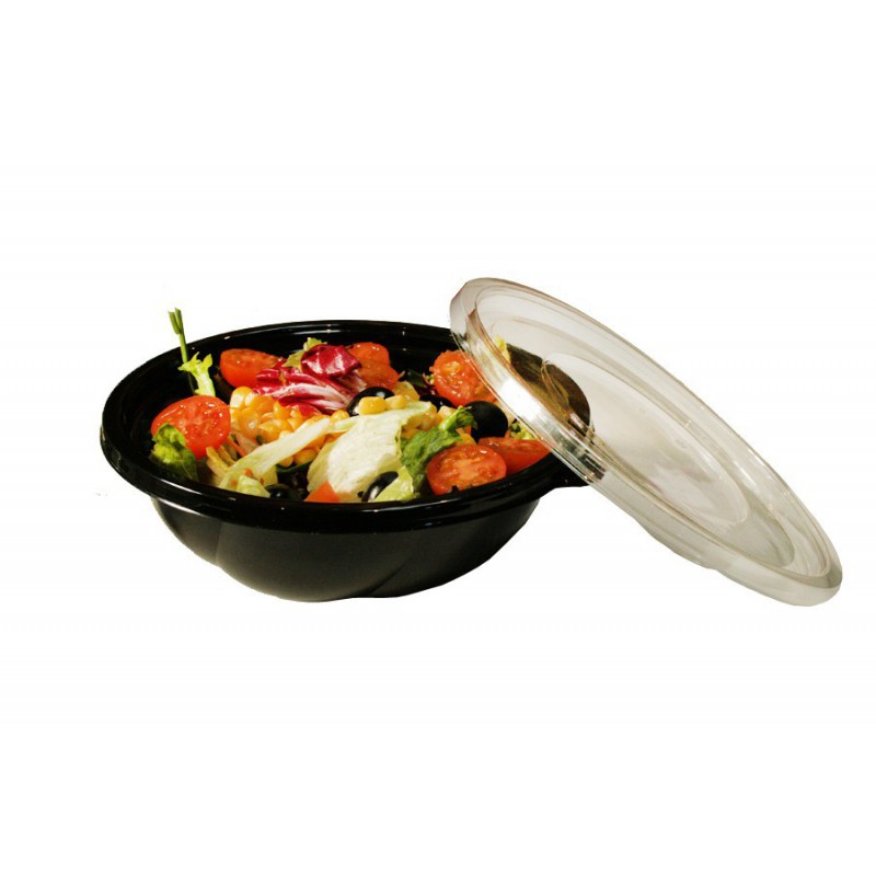 Saladeira de plástico redonda com tampa de dobradiça 250cc