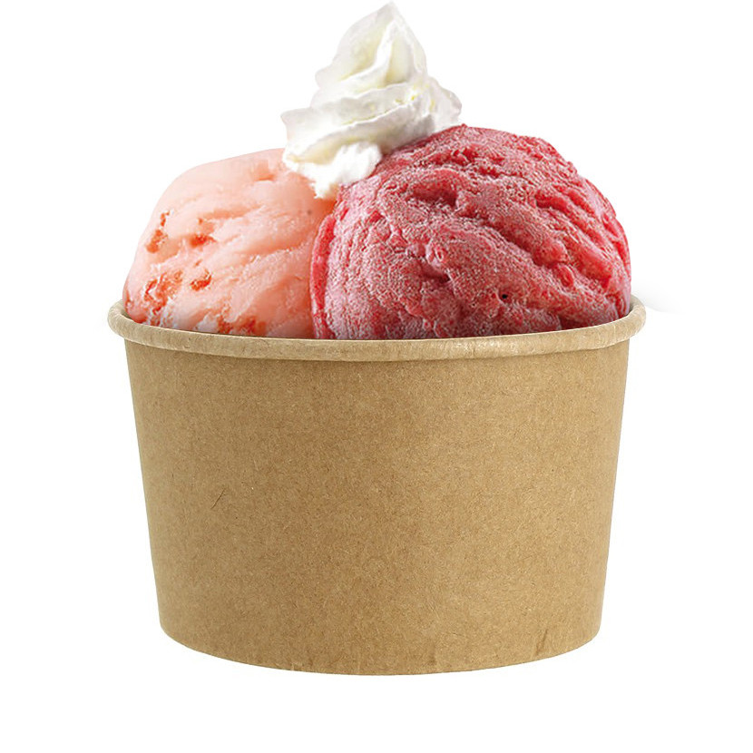 Taças para gelado com capacidade para 240 ml e de cartão kraft. O material da taça de gelado é 100% ecológico, pois provém de cartão reciclado e também é reciclável. Esta embalagem descartável é perfeita para geladarias e temporada de verão. Taça personalizável com o teu logótipo ou imagem de marca.
